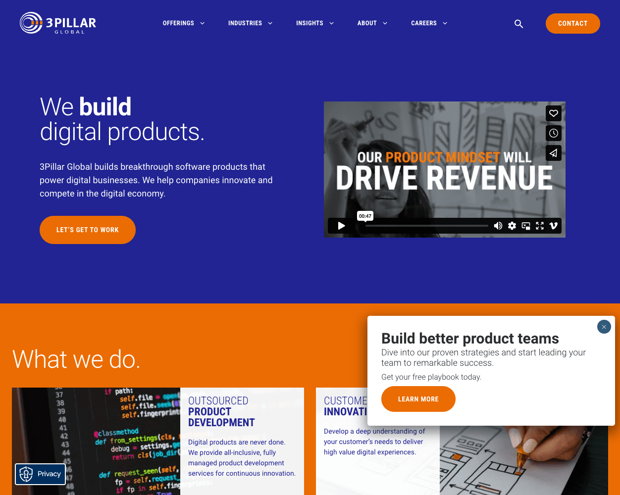 3Pillar Global specializes in creating digital products that drive business success. They offer comprehensive product development services, from initial concept and design to deployment and continuous improvement. Utilizing agile methodologies and a focus on the "Product Mindset," 3Pillar ensures that products are built to meet customer needs quickly and effectively.
