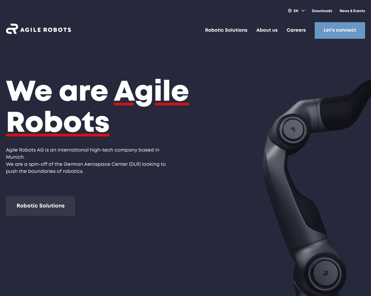 Agile Robots is an international high-tech company based in Munich, founded as a spin-off of the German Aerospace Center (DLR). They push the boundaries of robotics with their mission to bridge the gap between AI and robotics. Agile Robots provides customized turnkey solutions, offering state-of-the-art full-body force sensitivity and world-leading vision intelligence. With over 30 years of experience in developing sensitive robots, they design and create torque-controlled robotic arms and hands, complemented by their smart software AgileCore and AI algorithms. Their strong suit is connectivity, enabling integration of their own hardware and third-party solutions into a unified workflow for more flexible and efficient automation. They welcome complex challenges and invite clients to tell them which industrial processes they want to automate. Agile Robots AG has recently expanded with the acquisition of robotic specialist Franka Emika and moved into a new office building, as well as receiving TÜV SÜD certification for their YU 5 Industrial product.