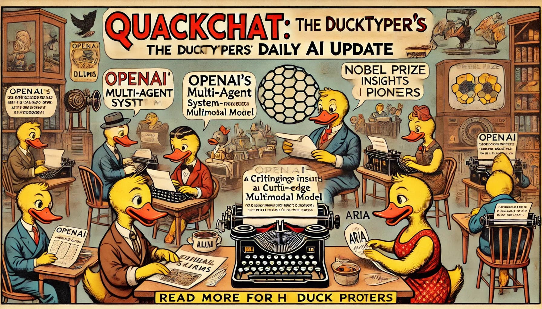 QuackChat: The DuckTypers' Daily AI Update brings you: ๐ OpenAI's Swarm: A new framework for multi-agent systems ๐ Aria: The breakthrough multimodal model topping leaderboards ๐ง LLM insights: From o1-mini to real-world applications ๐ฌ Industry deep-dives: Nobel Prize in Physics for AI pioneers ๐ Practical takeaways for AI product engineers Read More for an analysis of the latest AI developments!