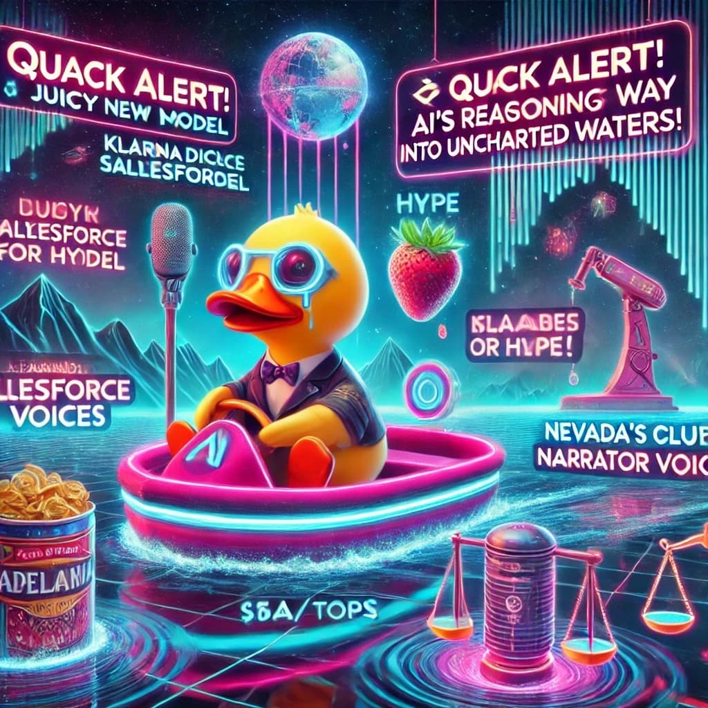 ๐ฆ Quack Alert! AI's reasoning its way into uncharted waters! ๐ O1: OpenAI's juicy new model or just seeds of hype? ๐ง Klarna ditches Salesforce for AI. Is SaaS on thin ice? ๐๏ธ Audible clones narrator voices. A bestseller or a flop? ๐ค Nevada's AI unemployment judge. Fair trial or kangaroo court? Plus, is O1's $60/million token price tag worth its weight in silicon? Waddle into QuackChat - where AI news gets a reasoning upgrade! ๐ฆ๐ก๐ฌ